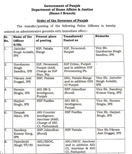 Home/BREAKING/जालंधर के SSP सहित 8 IPS अधिकारियों के तबादले ; पढ़े पूरी सूची BREAKINGDOABAJALANDHARMAJHAMALWAPUNJAB जालंधर के SSP सहित 8 IPS अधिकारियों के तबादले ; पढ़े पूरी सूची News Linkers07/05/20210 1,707 Less than a minute Tags#Hindi News #News Linkers #Punjab Hindi News SSP Jalandhar Rural TRANSFERS News Linkers07/05/20210 1,707 Less than a minute