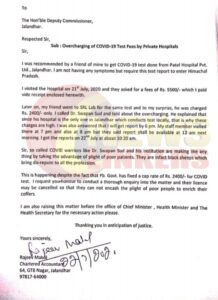 рдЗрд╕реА рдмреАрдЪ рдЦрдмрд░ рд▓рд┐рдЦрддреЗ рд▓рд┐рдЦрддреЗ рдбрд╛рдХреНрдЯрд░ рд╢рдорд┐рдд рдЪреЛрдкрдбрд╝рд╛ рдиреЗ рдиреНрдпреВрдЬрд╝ рд▓рд┐рдВрдХрд░реНрд╕ рдХреЛ рднреЗрдЬреЗ рдкреНрд░реИрд╕ рдиреЛрдЯ рдореЗрдВ рдХрд╣рд╛ рдХреА рд╡рд╣ рдЬрд╛рдВрдЪ рдЕрдзрд┐рдХрд╛рд░реА рдХреА рдЬрд╛рдВрдЪ рд╕реЗ рд╕рд╣рдордд рдирд╣реАрдВ рд╣реИ рдХреНрдпреЛрдХрд┐ рдкрдЯреЗрд▓ рдЕрд╕реНрдкрддрд╛рд▓ рдПрдХ рдкреНрд░рд╛рдЗрд╡реЗрдЯ рд▓реИрд╡ рдирд╣реАрдВ рд╣реИ рдЗрд╕рдореЗрдВ рдорд░реАрдЬ рдХреЛ рдорд┐рд▓рдиреЗ рд╡рд╛рд▓реА рд╕рд╣реВрд▓рддреЛ рдХрд╛ рдореВрд▓реНрдп рднреА рд╢рд╛рдорд┐рд▓ рд░рд╣рддрд╛ рд╣реИl рдЙрдиреНрд╣реЛрдиреЗрдВ рдХрд╣рд╛ рдХреА рд╢рд┐рдХрд╛рдпрддрдХрд░реНрддрд╛ рд╕реЗ рдХреЛрд░реЛрдирд╛ рдЯреИрд╕реНрдЯ рдХреЗ рддреЛ рдирд┐рд░реНрдзрд╛рд░рд┐рдд рдореВрд▓реНрдп рд╣реА рд▓рд┐рдП рдЧрдП рд╣реИ рдкрд░рдиреНрддреБ рдЗрд╕рдореЗрдВ рдЖрдИрд╕реЛрд▓реЗрд╢рди рд╡рд╛рд░реНрдб рд╡ рдЖрдХреНрд╕реАрдЬрди рд╕рдкреНрд▓рд╛рдИ рдЖрджрд┐ рдХреЗ рдореВрд▓реНрдп рд╢рд╛рдорд┐рд▓ рд╣реИl